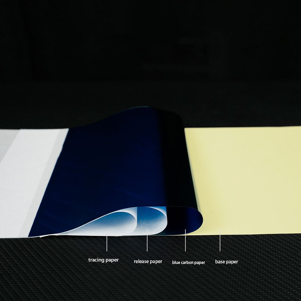 Protección avanzada de 4 capas: 1. Hoja maestra: Dónde se aplica su diseño. 2. Tejido protector: Debe retirarse antes de su uso. 3. Página del carbono: Carbón azul de alta calidad para transferencias vívidas. 4. Hoja de respaldo: Mantiene todo en su sitio para un trazado estable.